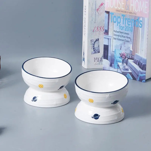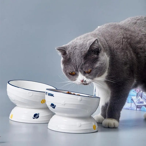 Elevated cat bowls offer a fantastic solution for enhancing your cat's dining experience. By raising the bowl to a more natural height, you help your cat maintain better posture while eating. This can lead to improved digestion and reduced strain on their neck and joints. The Planet Series Elevated Ceramic Pet Bowl is a great example of this design. Its elevated structure not only promotes a healthier eating position but also adds a touch of cosmic elegance to your home decor.